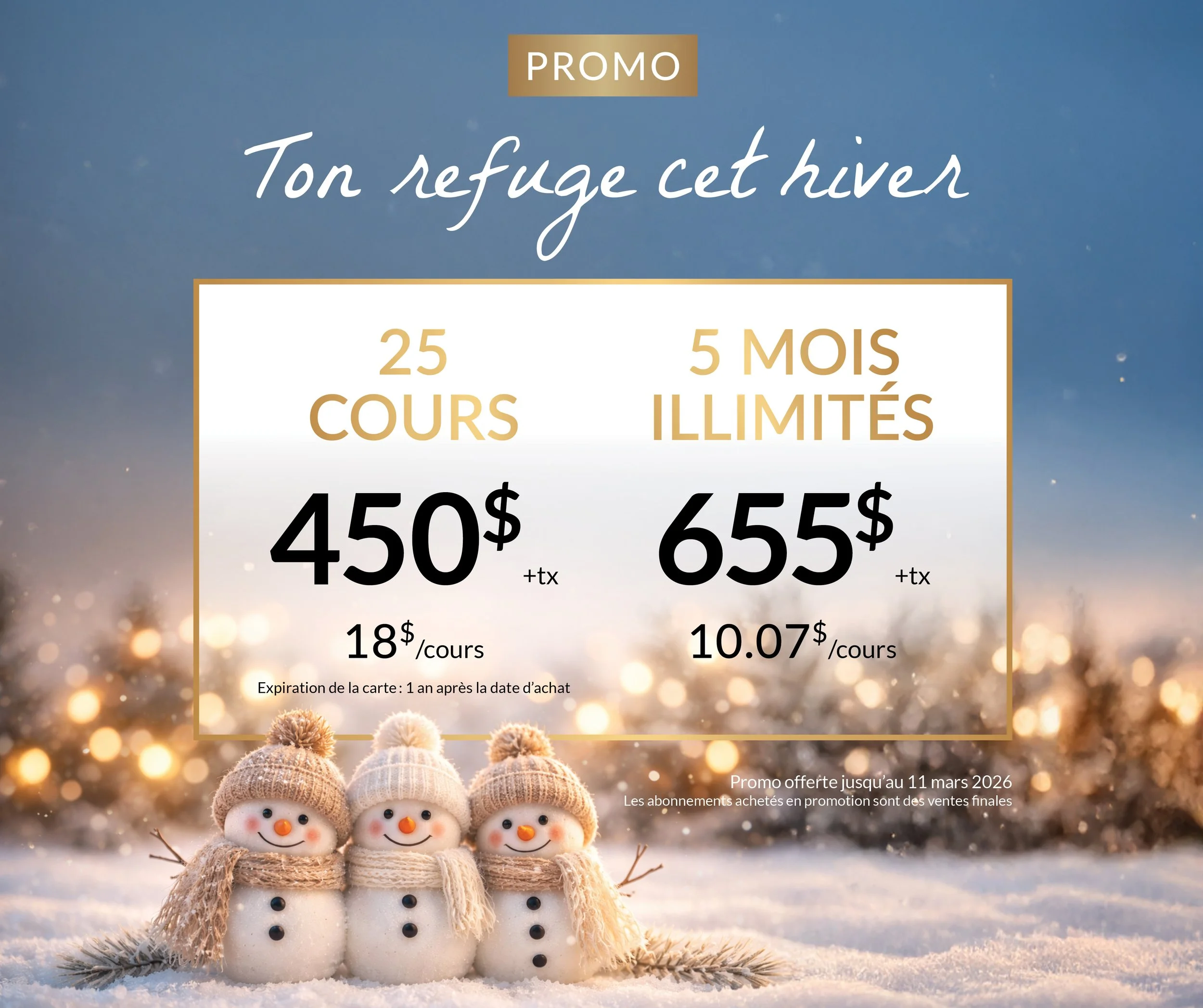 Nouveau.lle chez Carpe DIEM? On a pensé à deux promotions pour te faire découvrir le yoga chaud et notre ambiance unique. Ces offres avantageuses te donneront accès à plus d’un privilèges. Profites-en!
