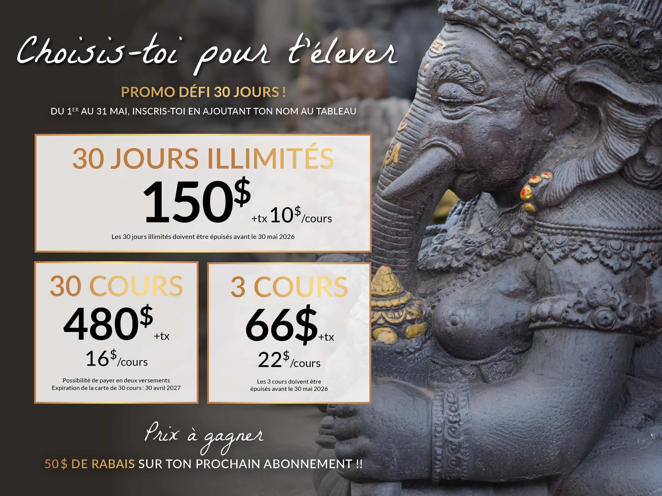 + 36 cours de yoga en ligne accessibles via un groupe VIP Facebook.